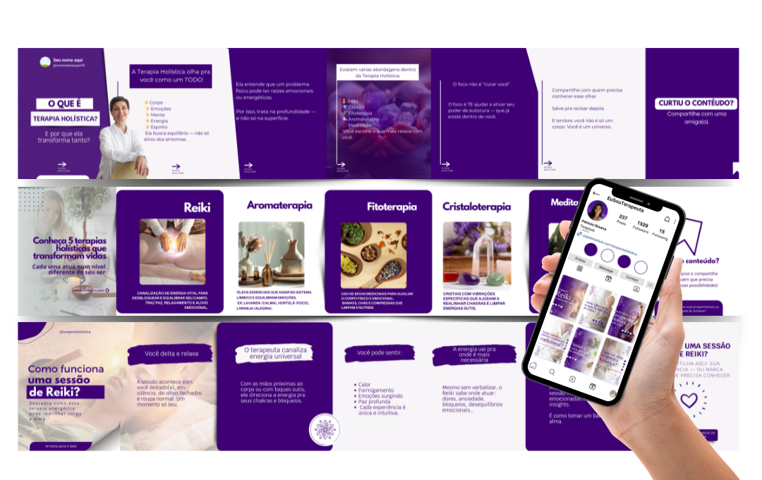 Cada carrossel traz conteúdo pensado para gerar salvamento, compartilhamento e autoridade. 📚 Conteúdos que seu público vai querer salvar e voltar sempre!