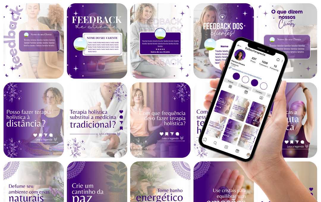 As artes são criadas com designs modernos e sofisticados, perfeitos para aumentar curtidas, comentários e compartilhamentos. Seu perfil vai se destacar e atrair mais seguidores interessados no seu trabalho.