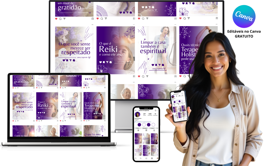 Sim! Basta você baixar o aplicativo do Canva e acessar o PACK TERAPIA HOLÍSTICA por lá para criar suas postagens direto pelo seu celular.